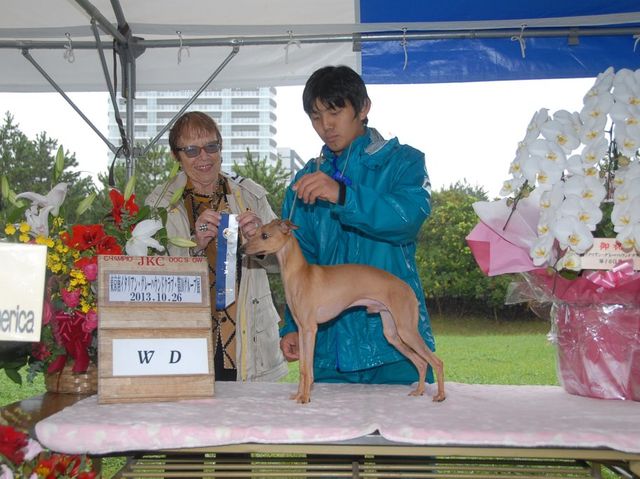| 2013年10月27日 JKCチャンピオン完成 2013年10月26日 東京南イタリアン・グレーハウンドクラブ第10グループ展にて ウィナーズ受賞 2015年6月21日 インターチャンピオン完成 | |