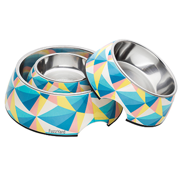 二層構造(内側ステンレス、外側メラミン製)のファッショナブルなフードボウル。