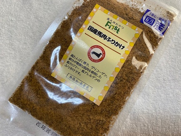 ●高たんぱく質でグリコーゲン、鉄分が豊富な馬肉を使用した低カロリー・低アレルゲンのふりかけです。