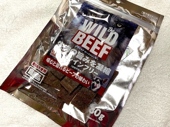 使用原材料の80%以上が肉類、穀物不使用(グレインフリー)でつくったビーフジャーキーです。噛めばお肉の旨みがじわっと広がります。