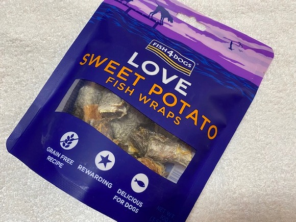 カリウムとビタミンが豊富なさつまいもをタラの皮で巻いたシンプルなトリーツです。