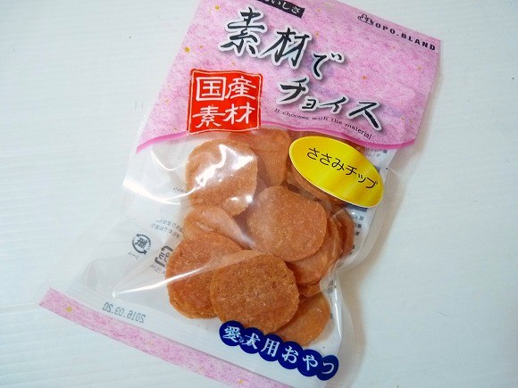 鶏ささみを使用した低カロリーなおやつです。一口サイズで与えやすいです。