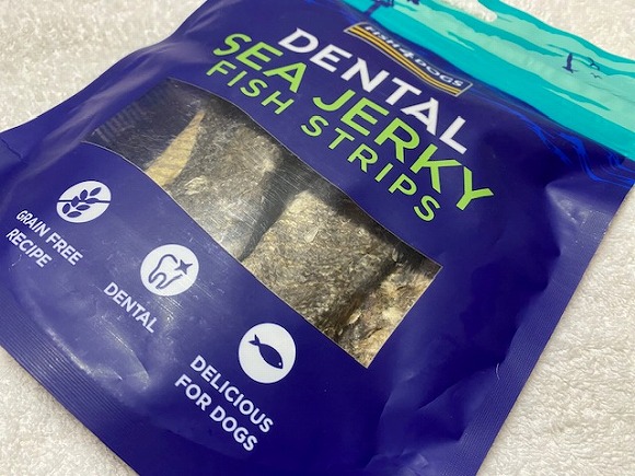 タラの皮を棒状に巻いて乾燥したトリーツ。